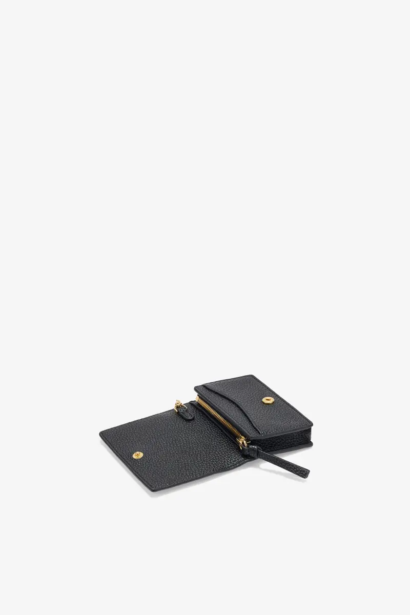 GANNI Card Holder With Flap in Grained Black with Gold
