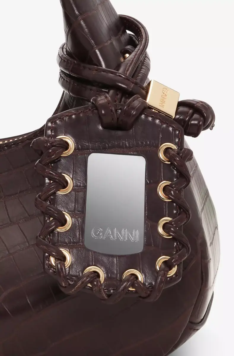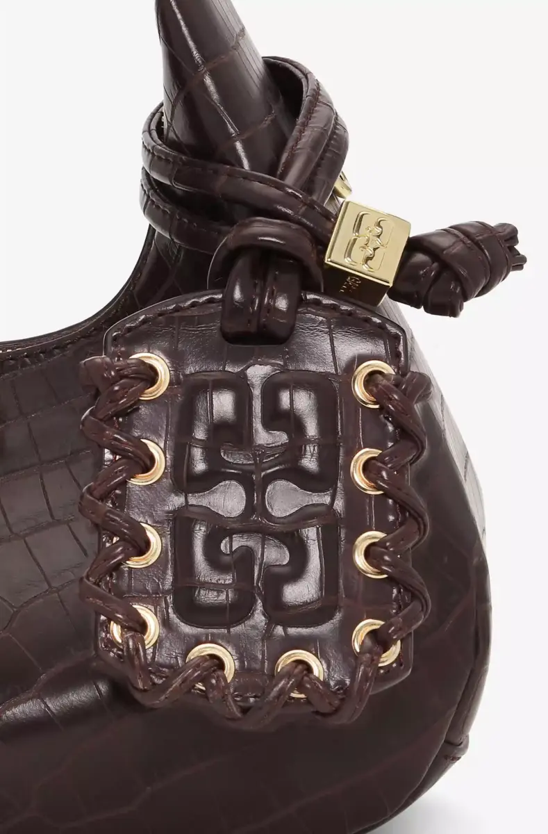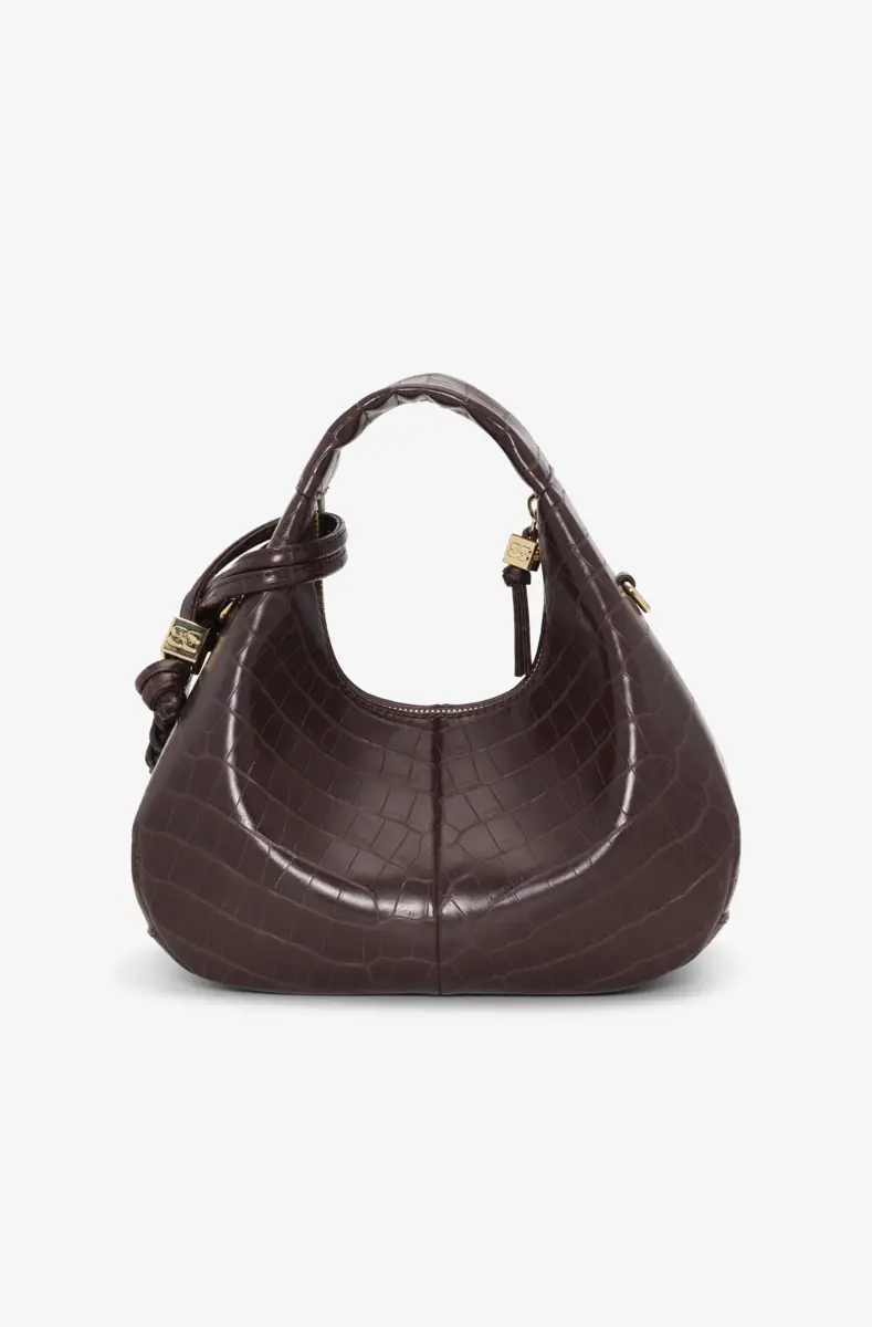 Brown Croco Mini Hobo Bag
