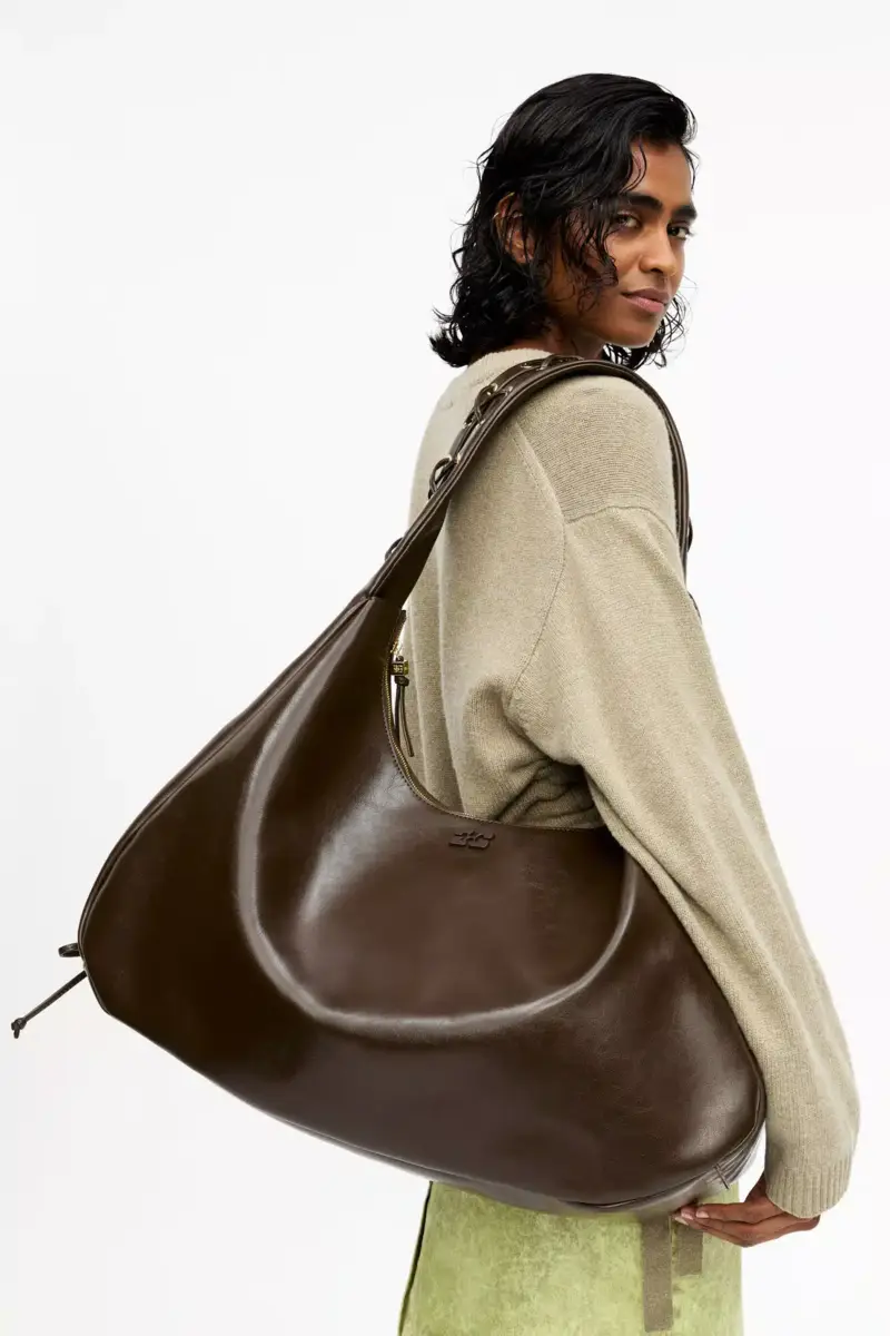 This bag is the silhouette of our Spring/Summer 2025 runway. Crafted with innovative materials, its oversized, slouchy shape is designed to be worn across the body or over the shoulder
