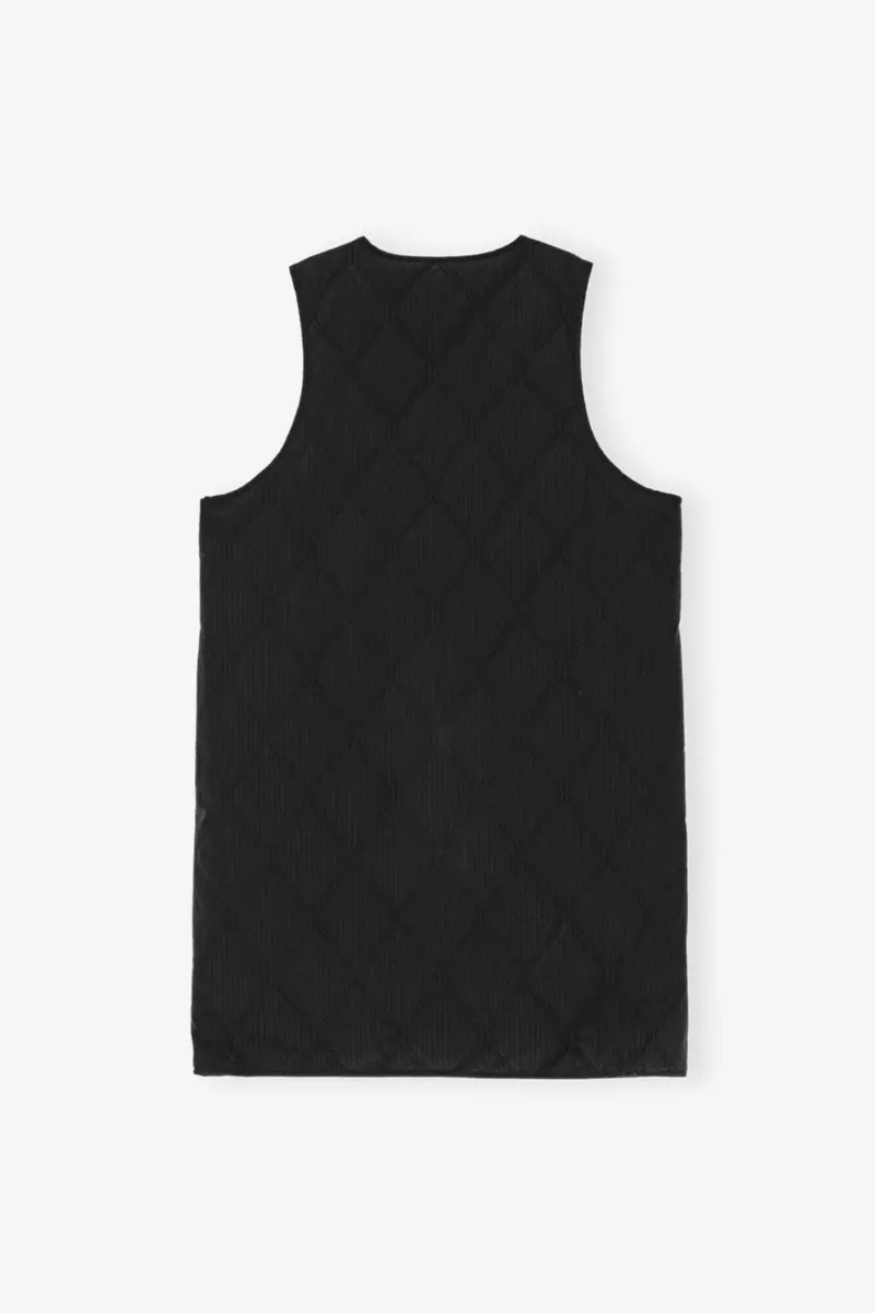 This Black Tech Seersucker Oversized Shell Coat features a front zip closure, elastic detailing at the sleeve cuffs, and pockets at the sides, front, and on one sleeve.