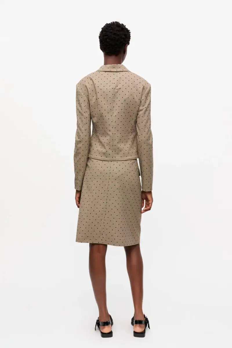 Crafted from a LENZING™ ECOVERO™ Viscose blend, this Flock Check Suiting Blazer is effortlessly refined yet versatile—a feminine take on classic tailoring. Designed in a slim fit with