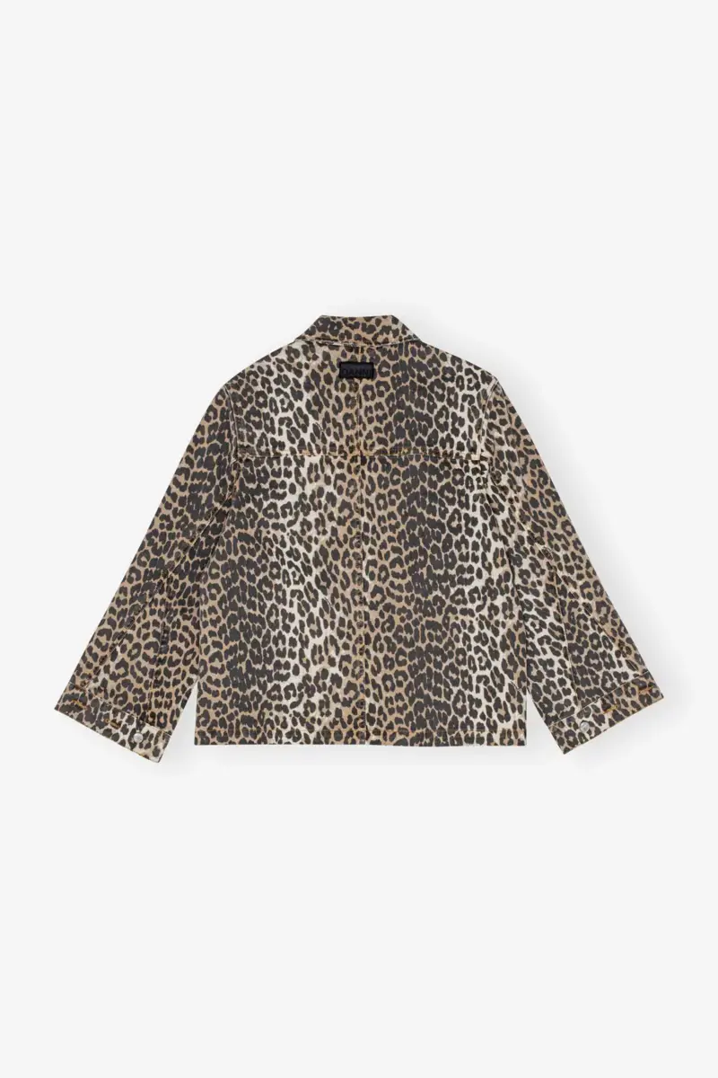 This jacket in leopard print features a collar, button closure, 2 front pocket, 2 side pockets and a GANNI logo at the back.