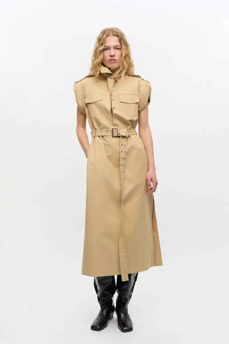 Beige Stretch Cotton Dress