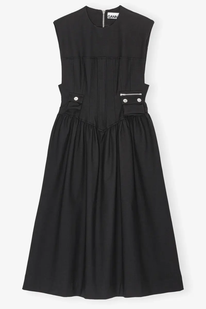 Introducing the dress silhouette of the moment, the Black Heavy Cotton Corset Midi Dress is designed in a feminine corset-inspired shape and crafted from heavy organic cotton with a hi