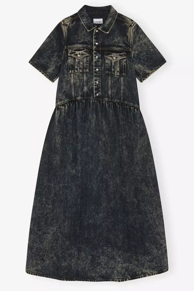 This dress features a classic collar, short sleeves, button front closure and 2 chest pockets.