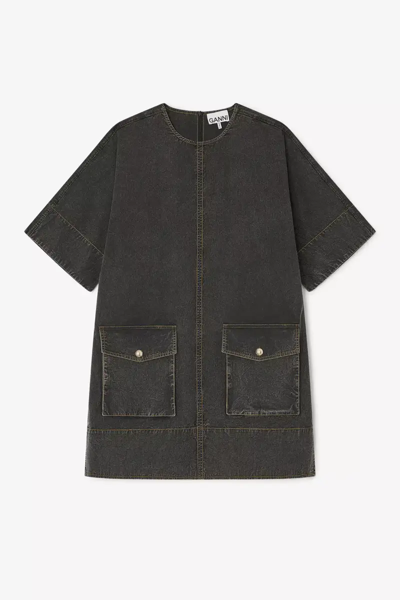 This dress features a round neck, short sleeves, 2 front pockets and contrast stitching detailing.