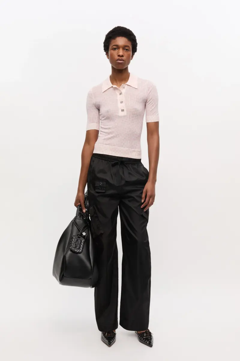 This polo features a check pattern, a buttoned front and a pointed collar.