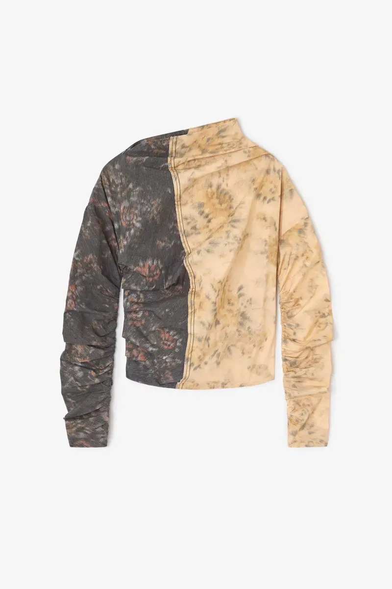 Black and Beige Ruched Top