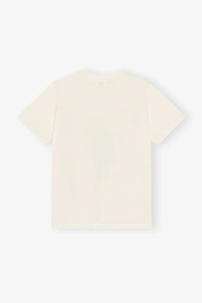 This T-shirt features a round neckline, short sleeves, and a GANNI logo. The T-shirt has a grapes print graphic and a ‘Have a nice day! Please recycle!’ message.