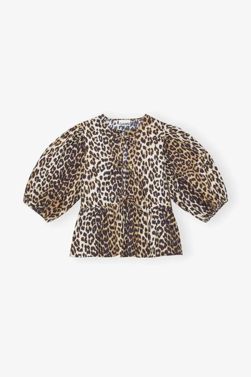 Leopard Cotton Poplin Peplum Tie Blouse