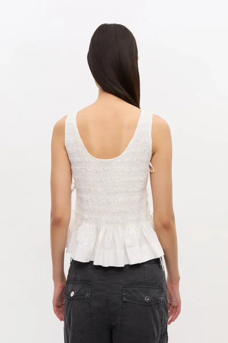 White Cotton Smock Tie Top