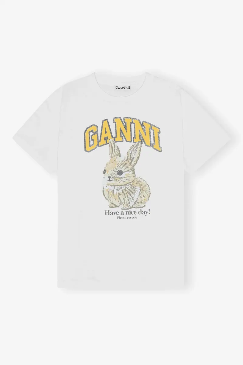 This White Relaxed Jersey Bunny T-shirt features a round neckline, short sleeves and a GANNI logo.