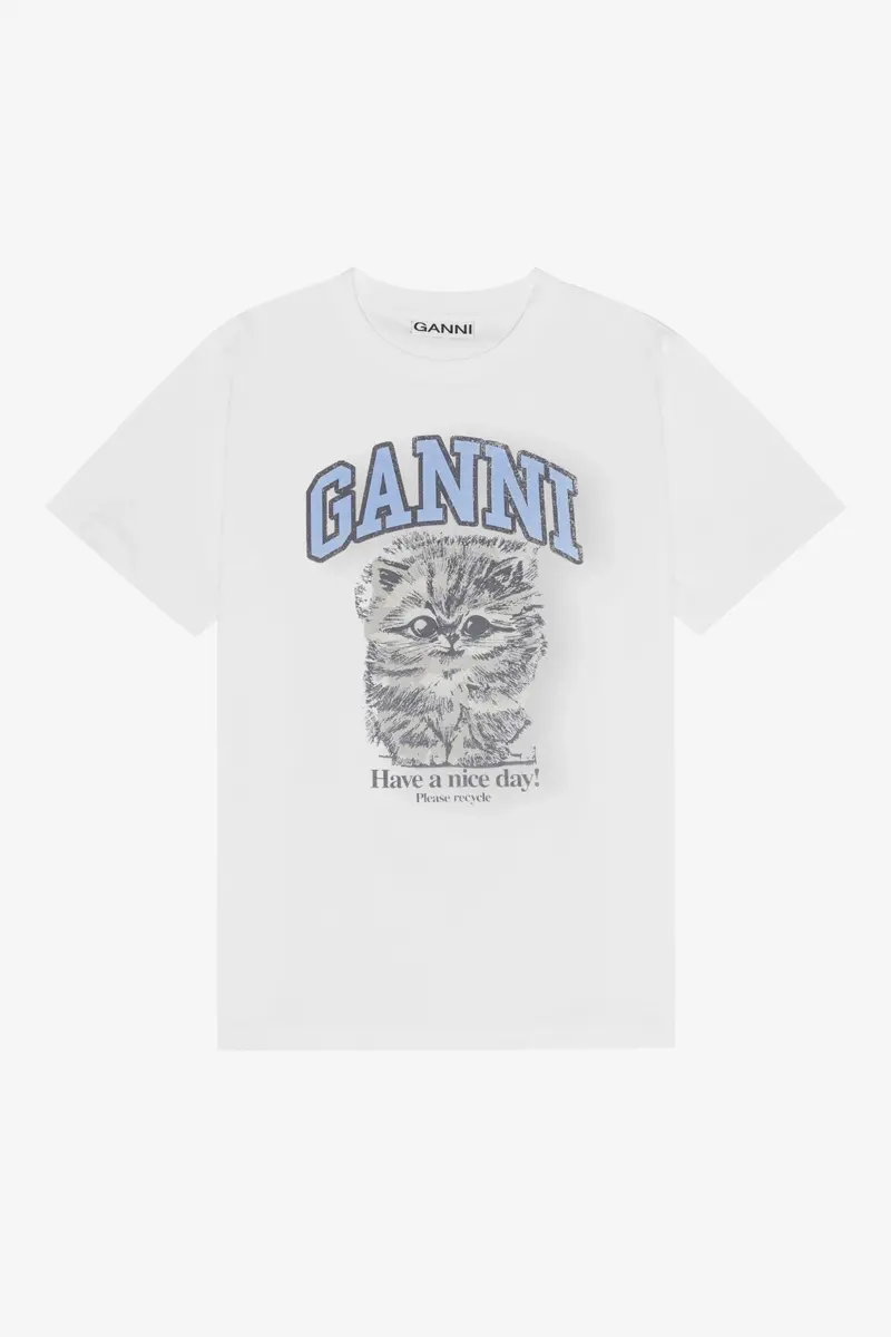 This White Relaxed Jersey Kitty T-shirt features a round neckline, short sleeves and a GANNI logo.