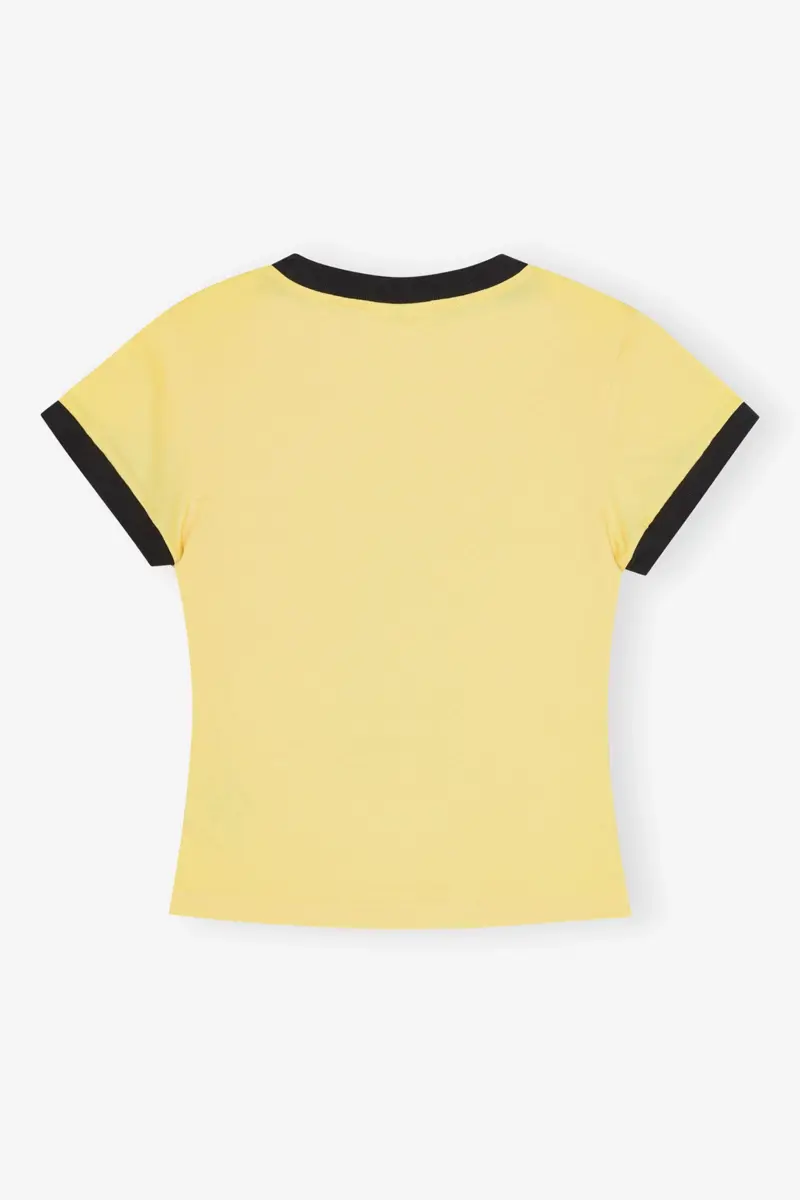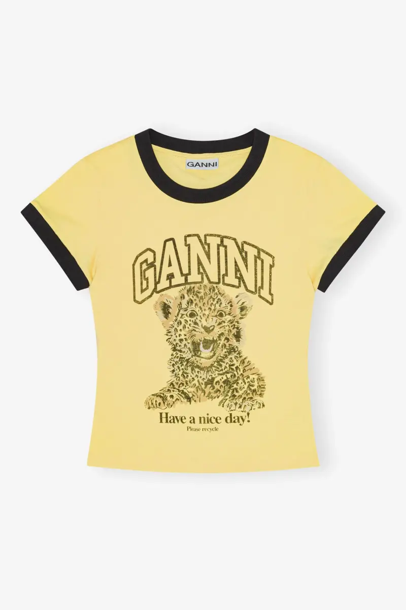 This Yellow Basic Jersey Leopard T-shirt features a round neckline, short sleeves and a GANNI logo.