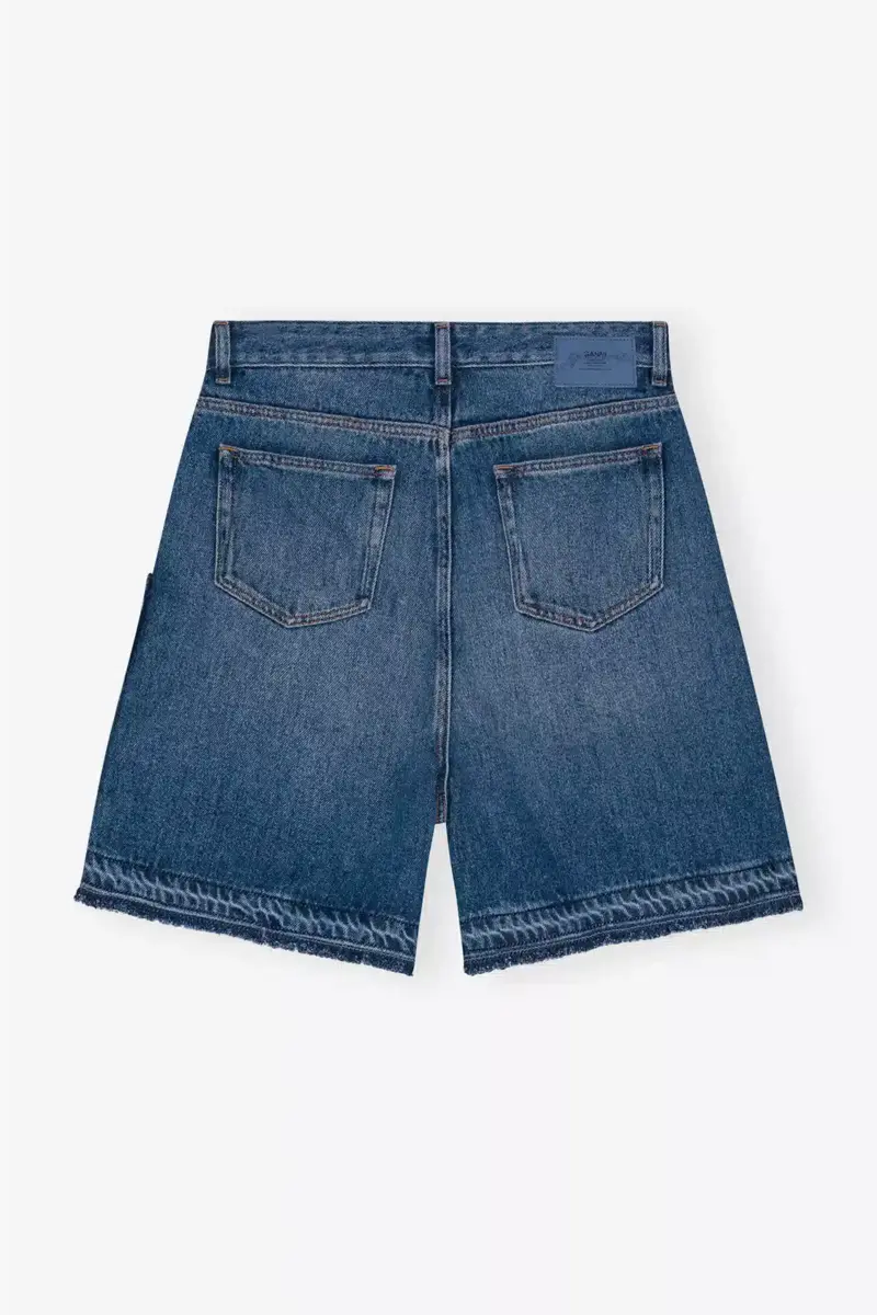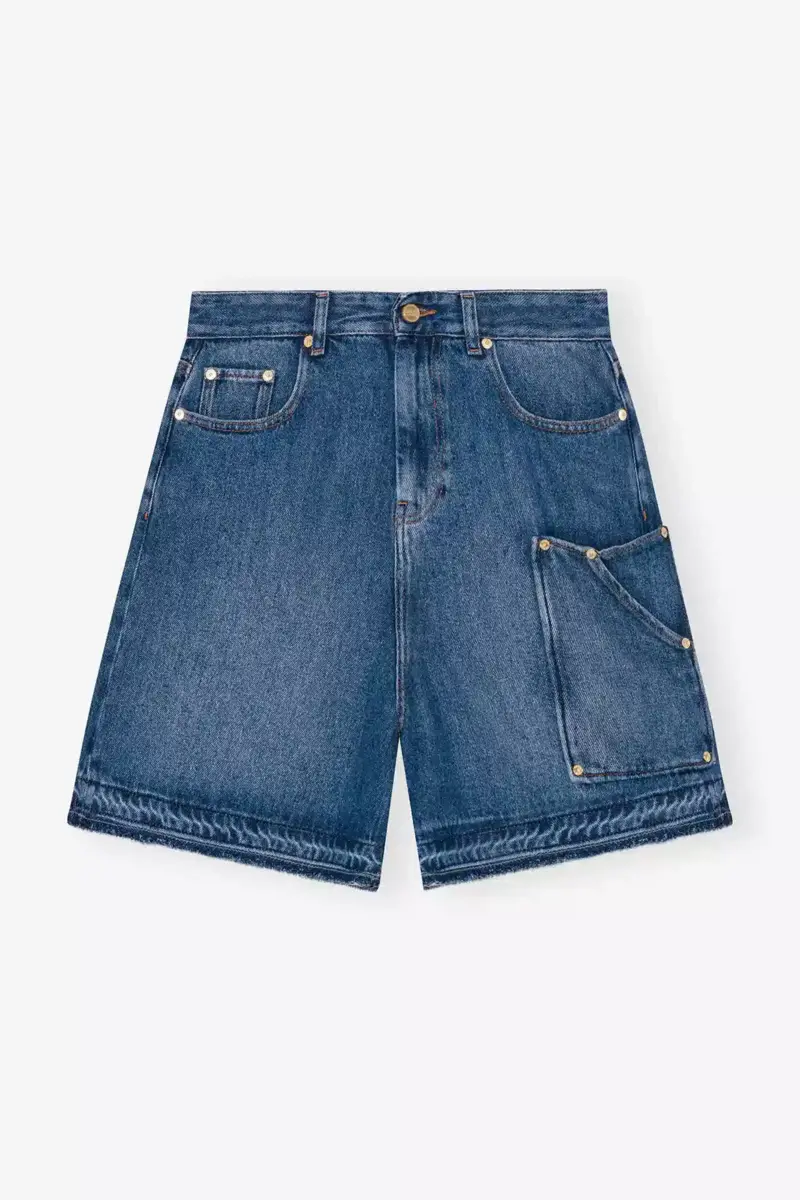 These shorts in denim feature a zip and button closure, 5 pockets and a cargo pocket on the side.