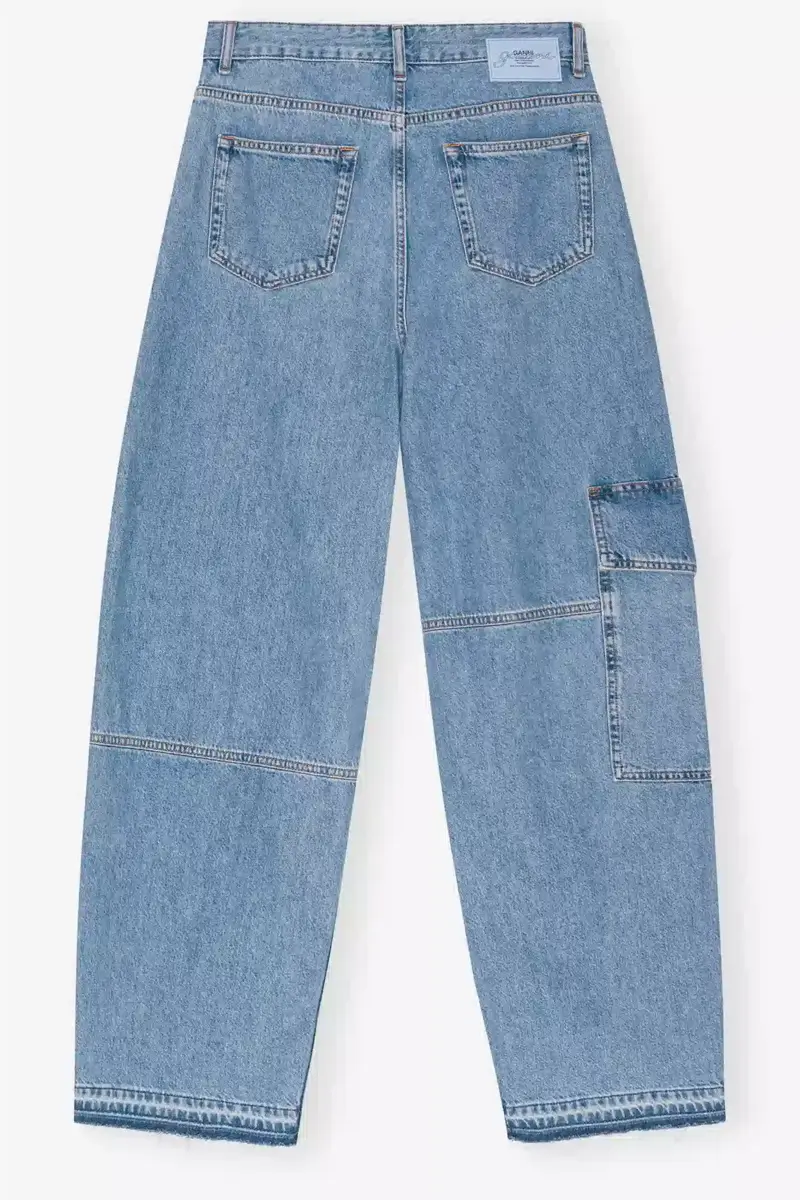 These jeans in light blue denim feature a zip and button closure, 5 pockets, belt loops and a GANNI logo patch at back pocket.